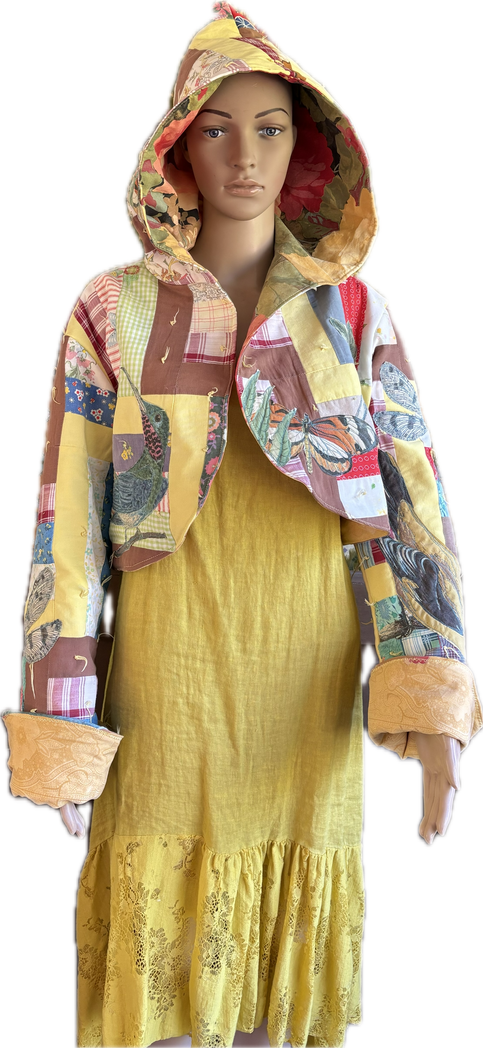 Victoria is also well-known as Sew Bee Mine, her innovative up-cycling of vintage embroideries, needlepoints, and other carefully chosen fabrics and materials to create beautiful one of a kind wearable art clothing and accessories. Victoria studied painting at The Academy of Fine Art.