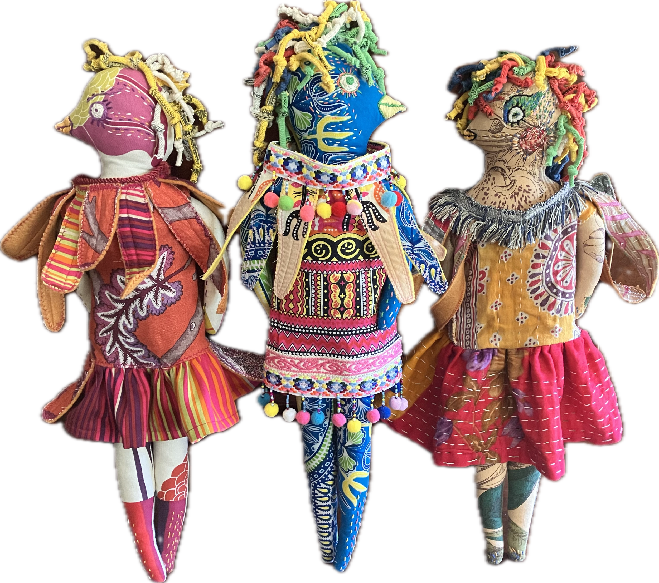 Victoria is a multi mediums artist. In addition to her background as a fine art painter, she creates paper and fiber art collages, layered fiber art wall pieces, plus various multi mediums 3 D characters and critters.